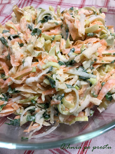 Surówka z marchewki i selera Wykonanie. Sałatka z różnych rodzajów kapusty z marchewką Głównym sekretem są co najmniej cztery rodzaje kapusty. Sałatka obiadowa z selera to szybki i zdrowy.