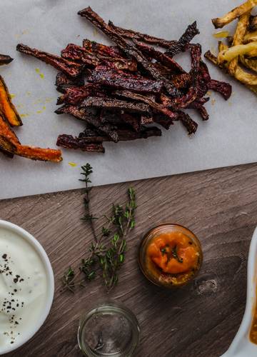 Wymieszaj ze sobą składniki i polej sosem. Pietruszki marchewki lub seler umyć osuszyć obrać i pokroić w paski wielkości frytek. Frytki z selera niskotłuszczowe 2 porcje 12 niedużego selera korzeniowego 2-25 łyżeczki oleju rzepakowego lub oliwy Odrobina soli Przyprawy.